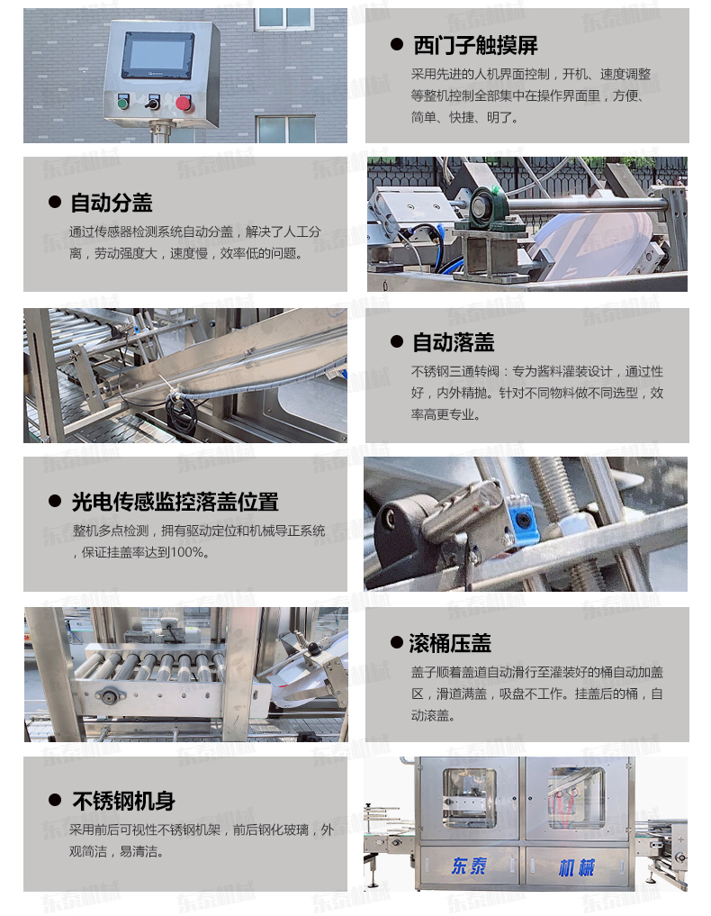 1.“自動吸蓋”自動控制系統(tǒng):整機(jī)多點(diǎn)檢測,通過光電傳感監(jiān)控落蓋位置