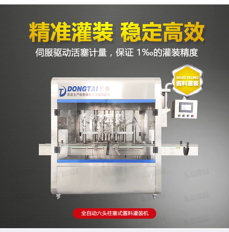 顆粒醬灌裝機(jī)采用活塞式灌裝原理,適用于調(diào)味品中帶顆粒并且濃度較大的辣椒醬、豆瓣醬、花生醬、香菇醬、果醬、牛油火鍋底料、紅油火鍋底料、蝦醬等較為粘稠醬類的灌裝。