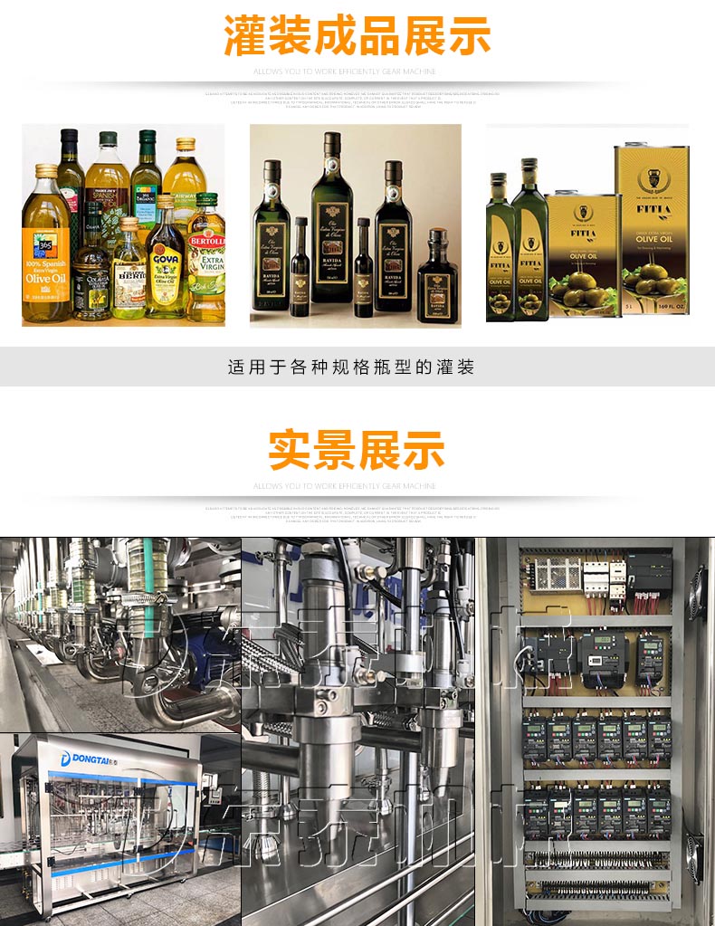 橄欖油采用PLC微電腦可編程控制,集光、機(jī)、電、傳感、氣動執(zhí)行于一體。橄欖油灌裝流水線中的注射缸活塞行程采用伺服電機(jī)驅(qū)動,行程定位精卻,并設(shè)定了快慢速灌裝。當(dāng)灌裝量接近瓶口時,速度壓力減小,以防物料因沖力大而飛濺溢出。該橄欖油自動灌裝機(jī)自動化程度高,調(diào)節(jié)方便,當(dāng)改變規(guī)格或修正計量時只需在顯示屏上調(diào)整即可滿足所需精卻計量。橄欖油自動灌裝機(jī),橄欖油灌裝流水線可適用于植物油、蜂蜜、果醬、糖漿、制劑、懸浮劑、機(jī)油和日化行業(yè)各種粘稠物料的灌裝。